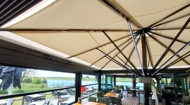 The double-layered drape provides a special feeling of comfort and well-being in your guest room, both acoustically and atmospherically. It is easy to clean and therefore guarantees long-term added value in addition to the special durability of the materials. The air exchange in the intermediate layer prevents droplet formation and condensation, both of which can occur due to high humidity in the guest room. - Polyplan covering for all large parasols: