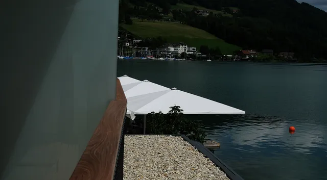 Juliana: We knew that we need umbrellas. Especially at lake Mondsee, the weather can change quickly, yet guests want to stay outside as much as comfortable. The solution with the rain gutter system and the comprehensive, flexible umbrellas is just perfect. It allows us to plan well and react to weather changes quickly.