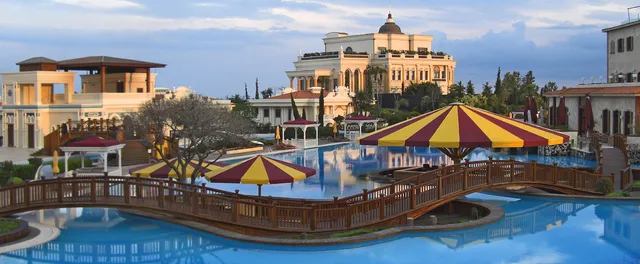 Oriental luxury and the seduction of 1001 nights: “Mardan Palace”, a 5 * + hotel complex in Antalya, and its breathtaking features leaves all the top hotels on the Turkish Mediterranean coast in the shade! The gigantic hotel complex with 560 rooms of the highest class includes various gastronomic temptations from around the world, several pools, patios, canals and even its own island. A complete shading plan was developed for the sprawling complex, extending from the beach to the rooftop patio and offering superlative features: overall, 2,248 m2 of total shaded space was achieved by no less than 62 custom-made Meissl large umbrellas; just the umbrellas adapted true-to-size to the asymmetric poolside bar comprise 157 m2 and weigh over 3.7 tons. The central pillar that weighed more than 2 tons had to be put in place with a special crane in the extensively completed facility. But the results and the very positive response have justified the expense.