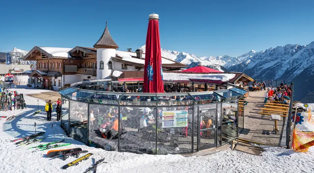 More than 25 years ago, a Meissl umbrella bar was installed for the first time at the Pilzbar in the Zillertal mountains. 10 years later, a Meissl large umbrella was added to cover the terrace of the restaurant. Having grown and developed steadily over the years, in 2022 we finally carried out some renovation work, during which we extended the currently installed umbrella bar to our iconic panorama line, enabling more space and a sky view inside.