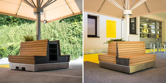 Meissl offers more than simple outdoor furniture: With our functional furniture, you are opting for a perfectly thought-out overall solution. Well-shaped, robust, extremely durable – and, if desired, with an optimally designed additional foundation for the matching large umbrella. All from one source.