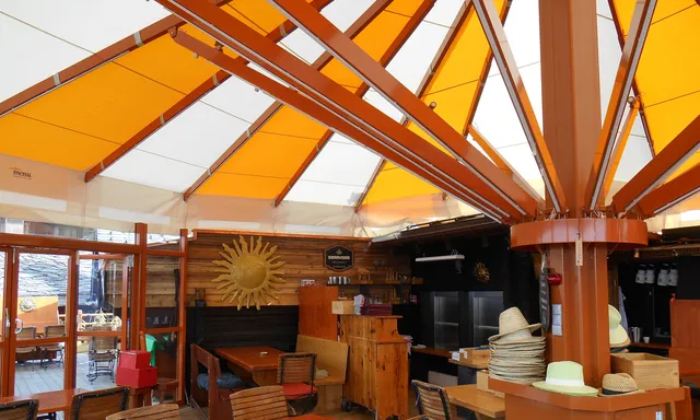 Umbrellas with direct connections to existing buildings or specific layouts usually require unusual sizes. Not infrequently, necessary deviations from normal dimensions are hardly noticeable and often it comes down to only a few degrees from a right angle. The already provided special dimensions provide reliable function and, ultimately, the custom-fit connections prevent moisture or air draughts from entering. Thus, it is still a matter of all-round protection in any weather. And so, Meissl developed polygonal large umbrellas that when open fit exactly into the given space situation – with continuous operation, at any location and in any weather!!
