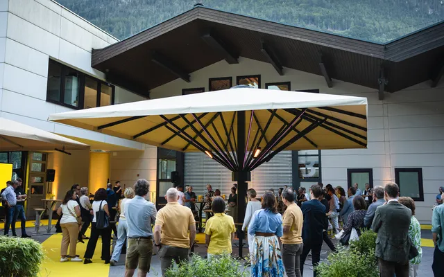 Nothing is impossible! Meissl professionals love to be challenged by seemingly impossible tasks. And they also convincingly achieve such tasks. When powerful forces that impact the frame structure and the fabric are taken into account for a specific size, then this interaction naturally increases, depending on how complex the design task is. After all, problem-free continuous operation must be ensured in every weather condition. The fact that the fully functional polygonal large umbrella can be easily operated and also looks quite “normal” is part of our skill and ambition.