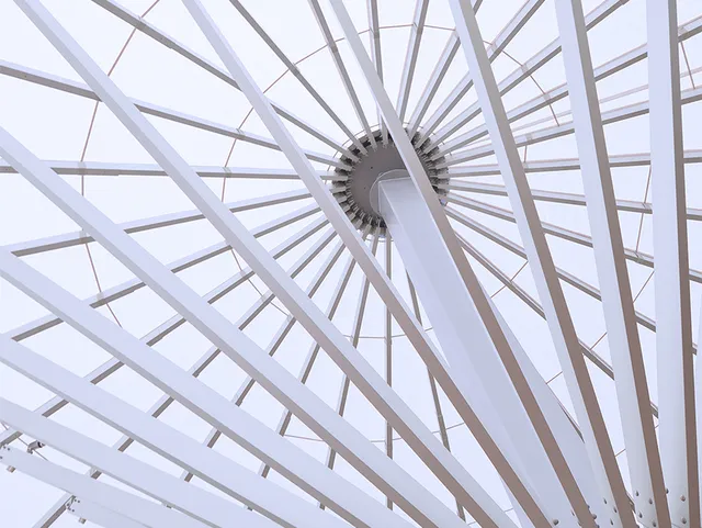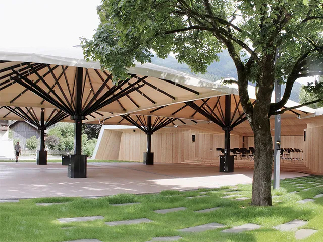 Entwurf und Installation eines Meissl-Riesenschirms mit 16 Meter Durchmesser und 200 Quadratmeter Fläche.