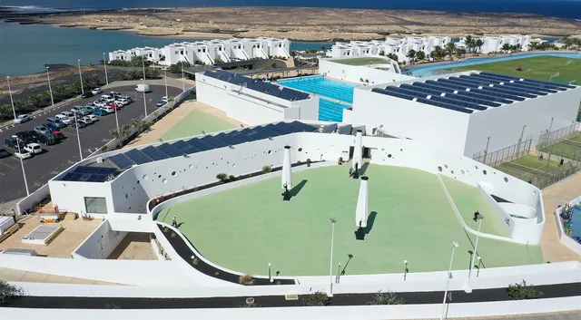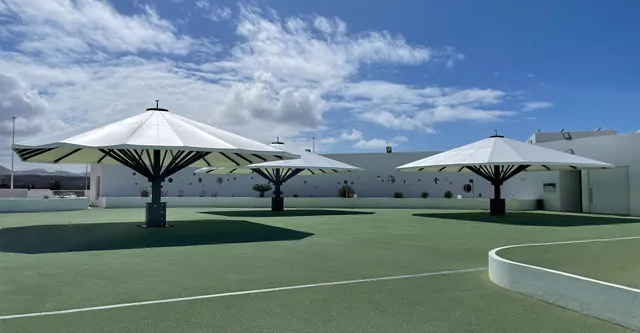Ein großer freier Platz für Fitness, Workouts, Tanzen und Yoga unter freiem Himmel darf da natürlich nicht fehlen. Um das ganze Jahr über auch bei strahlender Sonne oder Nieselregen draußen trainieren zu können, hat Meissl hier drei große Meissl-MR-Schirme installiert. Die Schirme können innerhalb von nur 120 Sekunden automatisch auf- oder zugefahren werden. Sie wurden extra so platziert, dass sie von 14:00 Uhr bis zum Sonnenuntergang maximalen Schatten spenden. Wir freuen uns sehr darüber, dass wir nun auch auf einer spanischen Ferieninsel vormachen, wie ausgeklügelte Wetterschutzlösungen von Meissl erstklassige Dienste leisten können.