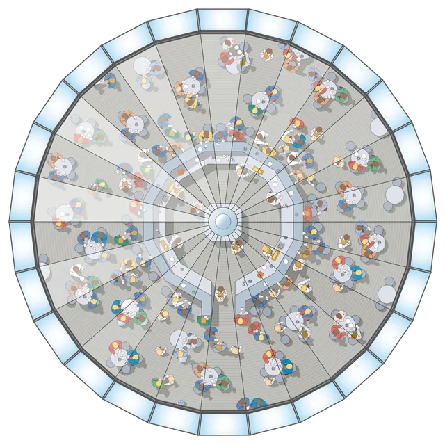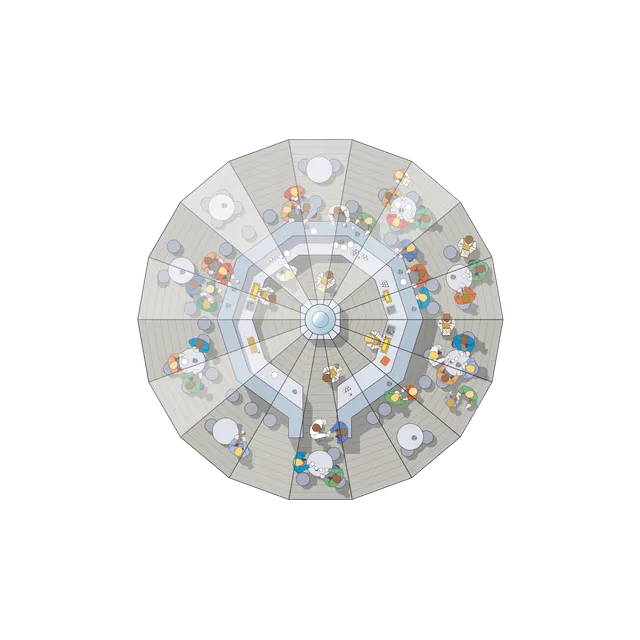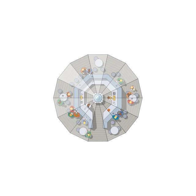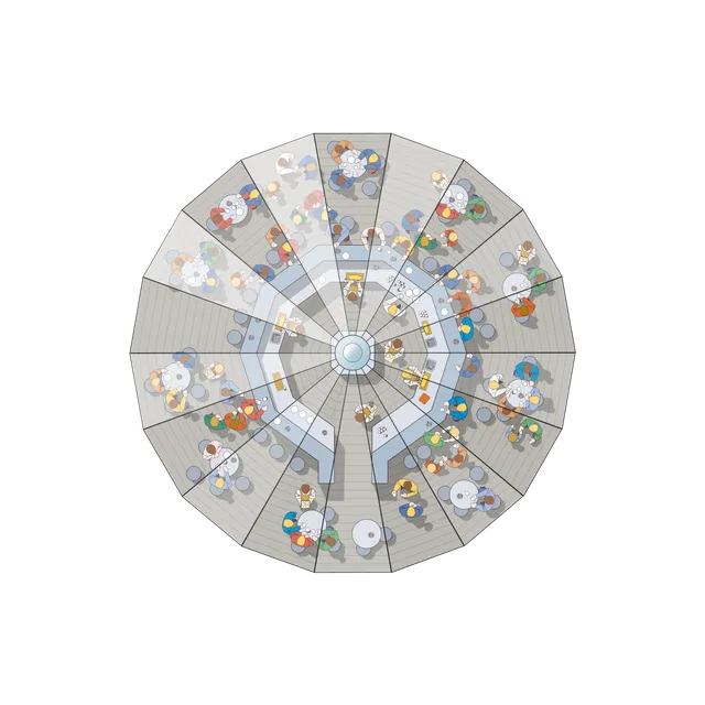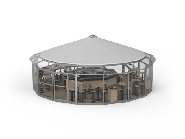 In zahlreichen Gestaltungslösungen und Ausstattungsvarianten ist dieser Schirmbartyp weltweit erfolgreich im Einsatz. Die wichtigsten Vorteile auf einen Blick: Komplette Bar-Ausstattung, durch die kreisförmige Anlage alle Funktionselemente im Griff. Die Rundumtheke bietet Platz für Gäste und schnelle Bedienung mit geringem Personaleinsatz. Die knappe Grundfläche der Schirmbar ermöglicht die Aufstellung auch an schwierigen Standorten.