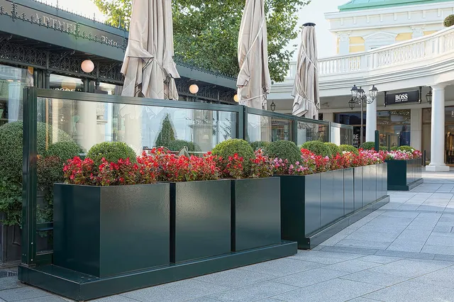 Hochfahrbare Windschutzwand mobil mit Blumenbehälter